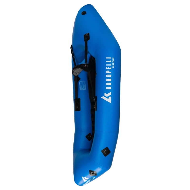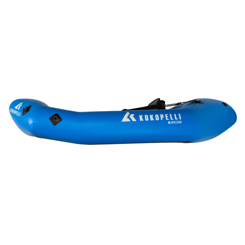 Das Recon „Self Bailer“ Raft ist ein Wildwasser Packraft das (mit entsprechnder Erfahrung) bis WW 4 funktioniert. Im Gegensatz zu den anderen Kokopelli Rafts wird hier 1000D PVC verwendet. Das Raft kann dadurch mit mehr Druck aufgeblasen werden und ist maximal robust. Durch die selbstlenzende Konstruktion lässt sich das Raft auch im wuchtigeren Wildwasser kontrolliert steuern. Bei dieser selbstlenzenden Version kommst du schneller in und aus dem Raft.